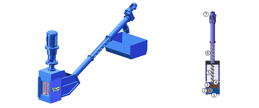 • 5.粉碎后的細小固體顆粒被導入斜立的螺旋輸送機